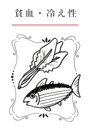 たとえば、冷えやすい人には体を温める食材を、のぼせやすい人には熱を冷ます食材を取り入れる・・・など。