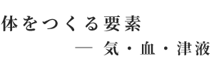 中医学では、人の体は大きく「気・血・津液(しんえき)」の3つで成り立つと考えます。