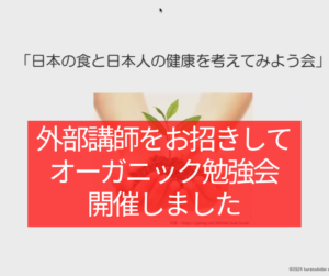 特別勉強会「日本の食と日本人の健康を考えてみよう会~オーガニックとは」開催しました 外部講師をお招きして「日本の食と日本人の健康を考えてみよう会~オーガニックとは?」を開講しました。   これは、薬膳の視点から自分や家族の体調に合わせた食...