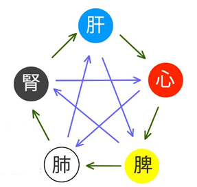 これは中医学の基本「五行学説」で分類されている5つのグループによって五臓と次のように対応しています。