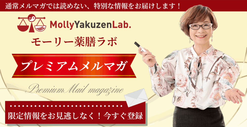毎朝届くメルマガで、その日の天候や食、健康に関する時事問題の薬膳解説、プレミアムメルマガ読者様だけの特別講座、割引特典満載のプレミアムメルマガ会員様絶賛募集中です。